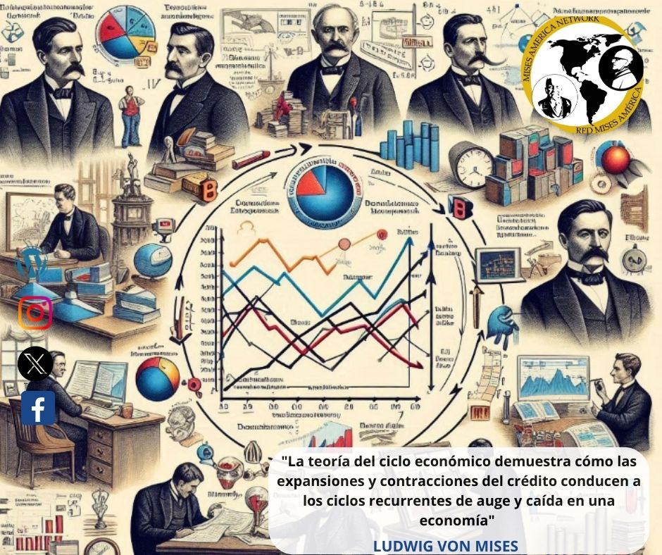 “La Acción Humana”, es un componente central de la Escuela Austriaca de Economía. Mises argumenta que los ciclos económicos de auge y recesión son el resultado de la manipulación del crédito por parte de los bancos centrales, lo que lleva a una expansión artificial del crédito bancario.