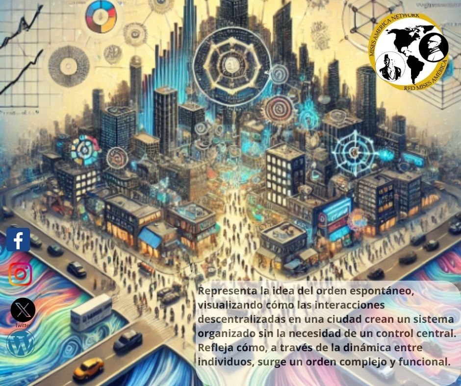 El orden espontáneo no planificado: Zanotti explica que el orden social no necesita ser dirigido por un ente central, sino que se desarrolla a través de la coordinación descentralizada de las acciones humanas. Cada individuo persigue sus propios fines, y a través de mecanismos como el mercado o el lenguaje, se crea un orden sin que nadie lo haya diseñado.