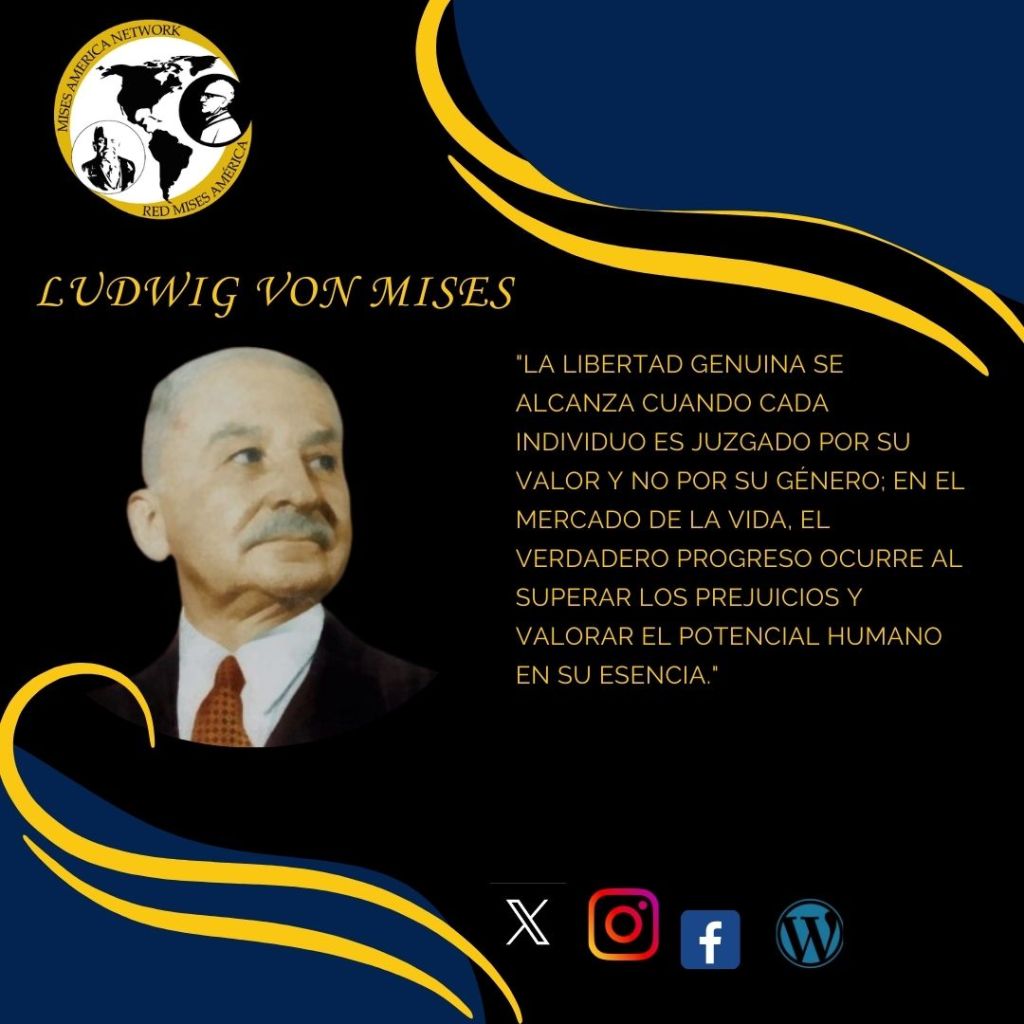 Mises plantea que, en una sociedad de mercado libre, los individuos son libres para actuar y perseguir sus propios intereses, siempre que sus elecciones se enmarquen en un contexto de respeto a los derechos de los demás. Este punto de vista se puede vincular directamente con el acceso a oportunidades para las mujeres: en la medida en que el mercado sea libre, sin restricciones ni barreras legales basadas en el género, las mujeres pueden tener una mayor libertad para decidir sobre sus propios recursos, formación y empleabilidad. Esta libertad de elección es clave para reducir la discriminación, pues cada individuo puede demostrar su competencia y potencial en el mercado de trabajo sin obstáculos sistemáticos impuestos por el Estado o la cultura.