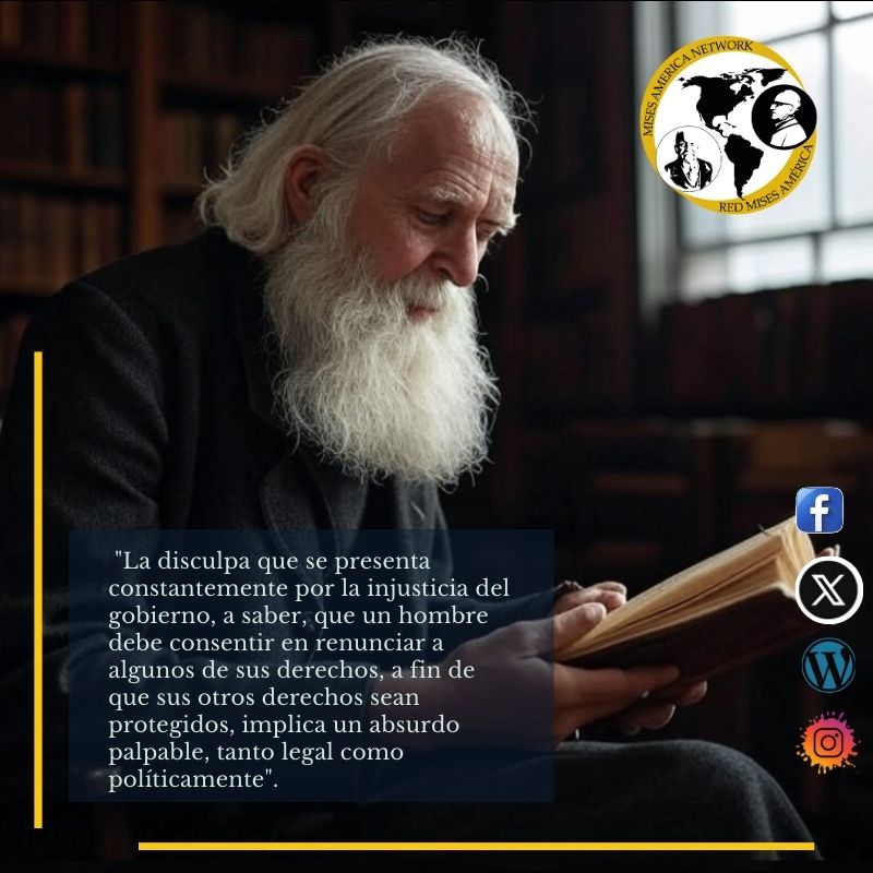 Lysander Spooner, desafía una de las premisas fundamentales del poder gubernamental: que la seguridad y la justicia requieren sacrificios personales impuestos. Como demuestran los pensadores mencionados, tanto desde la Escuela Austriaca como desde el liberalismo clásico y libertarismo contemporáneo, esta idea es un artificio del Estado para justificar su expansión. La verdadera protección de los derechos no radica en su fragmentación ni en su cesión parcial, sino en su respeto absoluto.