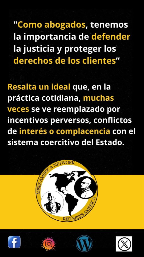 Una sociedad libre y próspera requiere no solo reglas claras, sino también hombres y mujeres éticos que las apliquen y las interpreten. El abogado no es simplemente un técnico de la ley; es un agente moral que debe actuar con principios, incluso cuando la ley lo invite a lo contrario. Si como economistas defendemos el mercado como orden de cooperación, necesitamos profesionales del Derecho que lo protejan con ética, no que lo manipulen desde el poder. Porque sin ética, ni el mercado, ni la ley pueden garantizar justicia, solo poder arbitrario.