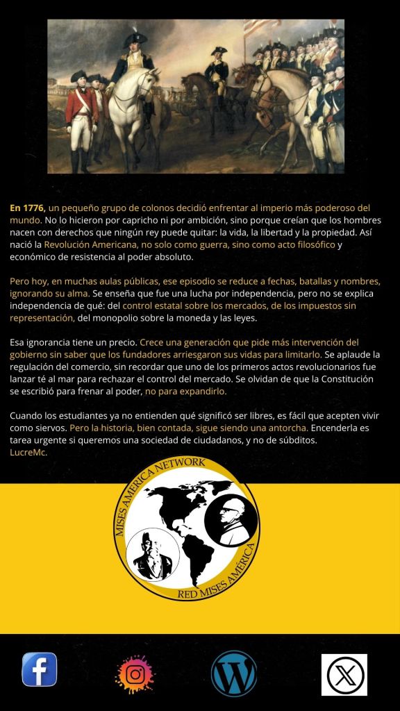 El olvido (o distorsión) de la Revolución Americana en las escuelas no es solo un problema histórico, sino un fenómeno filosófico con consecuencias reales en el entendimiento del mercado, las leyes y la política actual. Recuperar ese legado no es nostalgia, sino una necesidad urgente para la conservación de la libertad en el siglo XXI.