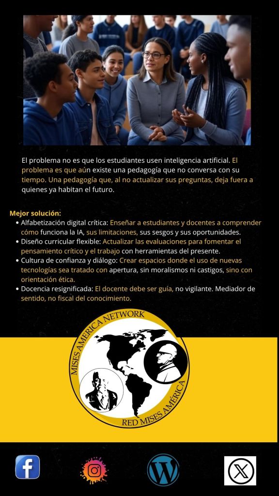 Pero una profesora, Clara, pidió la palabra. Con voz firme, pero serena, dijo: —Pensar en la inteligencia artificial como herramienta clandestina trasciende el señalamiento anecdótico para funcionar como síntoma de un problema mayor: la distancia creciente entre las formas en que se produce y se accede al conocimiento dentro y fuera de la escuela.