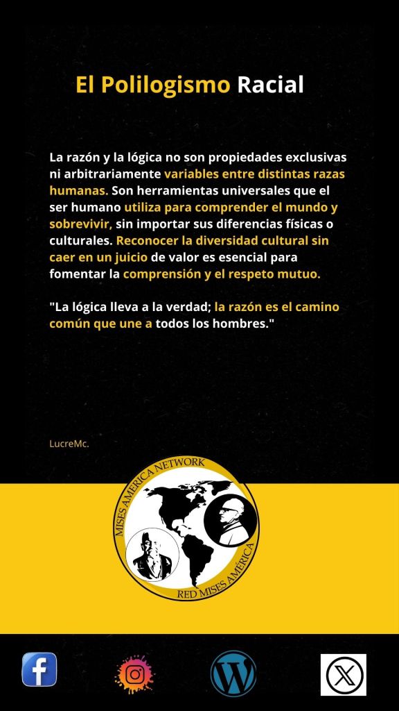 "polilogismo racial" está centrado en una crítica a la idea de que diferentes razas tengan estructuras mentales y modos de razonamiento distintos. Se cuestiona la validez del polilogismo, que es la idea de que las diferentes razas piensan de maneras completamente diferentes, y se argumenta desde una perspectiva filosófica y científica que el pensamiento lógico y la razón son universales en la especie humana.