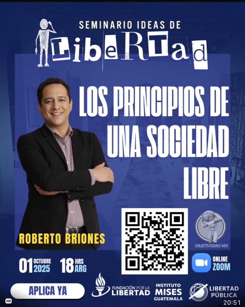Los principios de una sociedad libre. Publicado el 25 de septiembre, 2025 por lucremc Roberto Beiones, escritor mexicano y objetivista, hablando sobre *Los principios de una sociedad libre*. Una charla sobre ética, moral y libertad que te hará reflexionar. ¡Imperdible! 🇲🇽✨ #EconomíaAustríaca #PluralismoEconómico #EducaciónFinanciera #FriedrichHayek #CarlMenger #PensamientoCrítico #HistoriaEconómica #Empredimiento #EducaciónContinua #AcciónHumana #Kirzner #Descentralización #InnovaciónEconómica #EstudiarTransformahttps://redmisesamerica.blog/bibliotecaredmisesamerica/Difundo ideas con rigor y verdad,por la libertad, la razón y la equidad.Si este saber deseas promover,comparte y ayúdame a hacerla crecer. Comparte esto: Haz clic para compartir en X (Se abre en una ventana nueva) X Haz clic para compartir en Facebook (Se abre en una ventana nueva) Facebook Más Haz clic para enviar un enlace por correo electrónico a un amigo (Se abre en una ventana nueva) Correo electrónico Me gusta Cargando... Publicado por lucremc Ver todas las entradas de lucremc