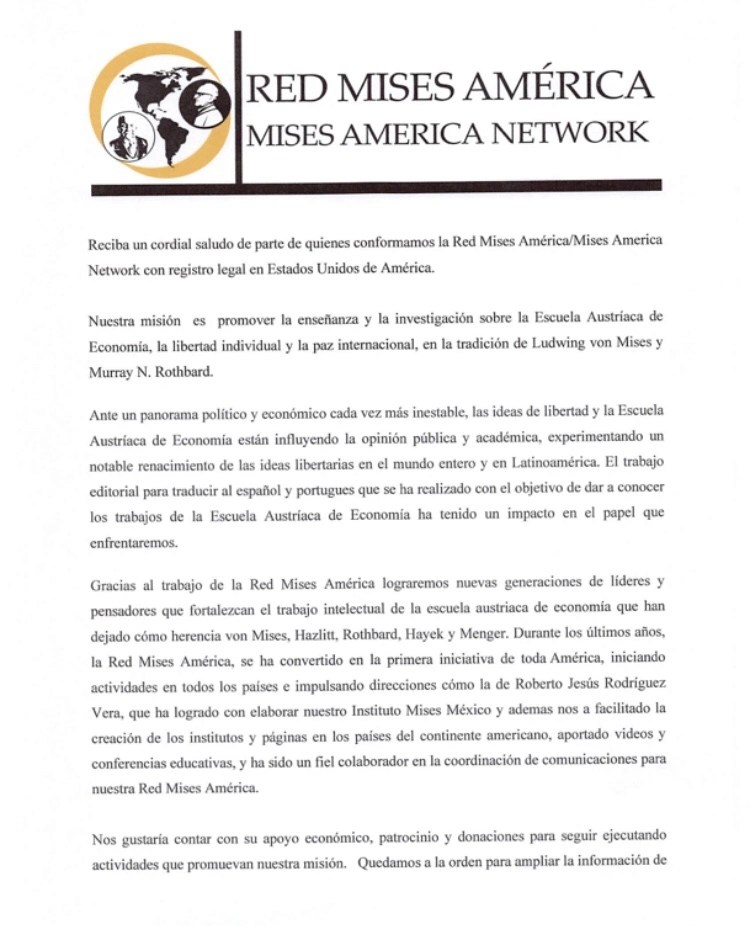 Proyecto a cargo de la Red Mises América, Red lidereada por el Instituto Mises Cuba.
